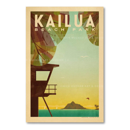 ハワイ各地の美しい風景をレトロなタッチで描く、サーフアーティスト、Nick Kucharのハワイトラベルプリント。