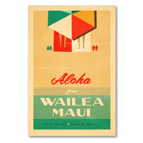 ハワイ各地の美しい風景をレトロなタッチで描く、サーフアーティスト、Nick Kucharのハワイトラベルプリント。