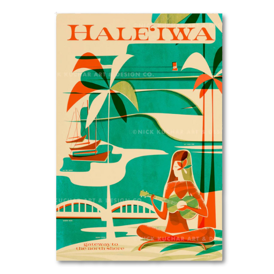 ハワイ各地の美しい風景をレトロなタッチで描く、サーフアーティスト、Nick Kucharのハワイトラベルプリント。
