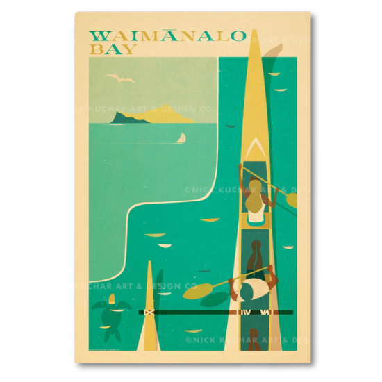 ハワイ各地の美しい風景をレトロなタッチで描く、サーフアーティスト、Nick Kucharのハワイトラベルプリント。