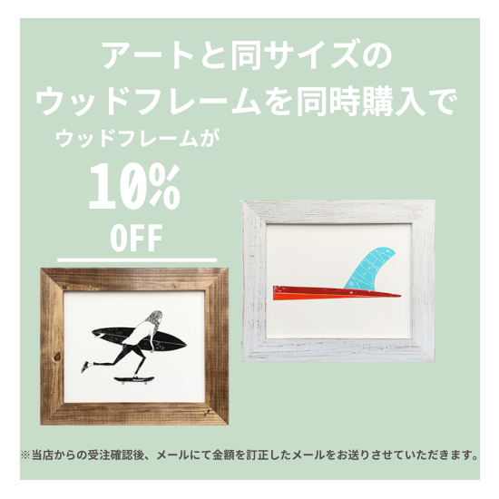 彼の絵にはサーフボードが描かれることが多く、飾るだけでビーチや自然を感じます。