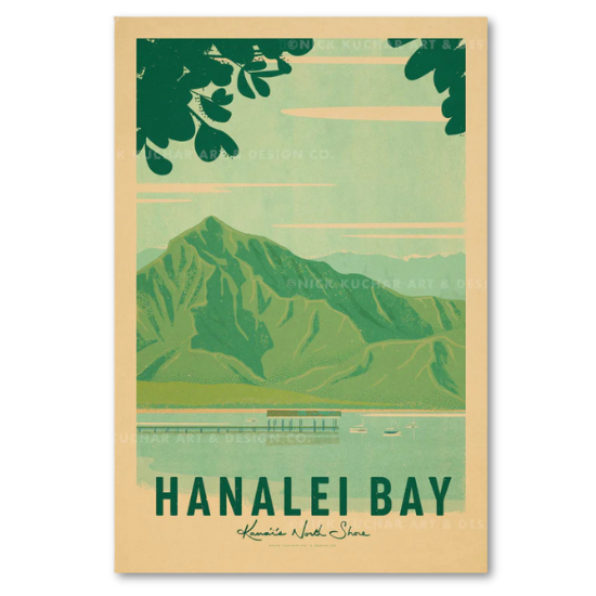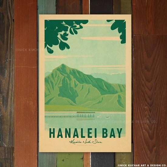 ハワイ各地の美しい風景をレトロなタッチで描く、サーフアーティスト、Nick Kucharのハワイトラベルプリント。