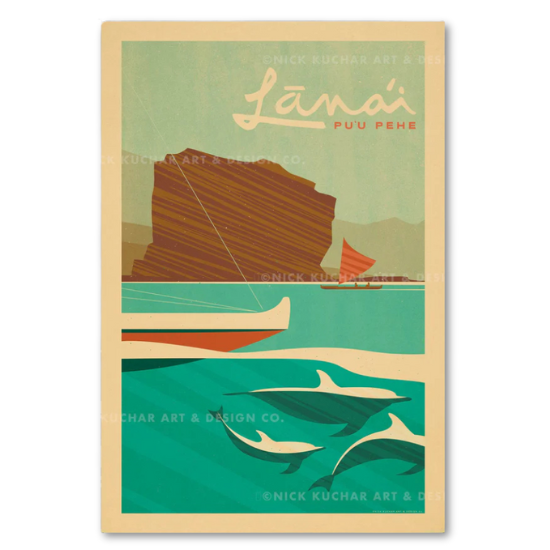 ラナイは、ハシナガイルカがたくさんいる静かな場所。自然が広がる「人里離れた島」を描いた1枚。