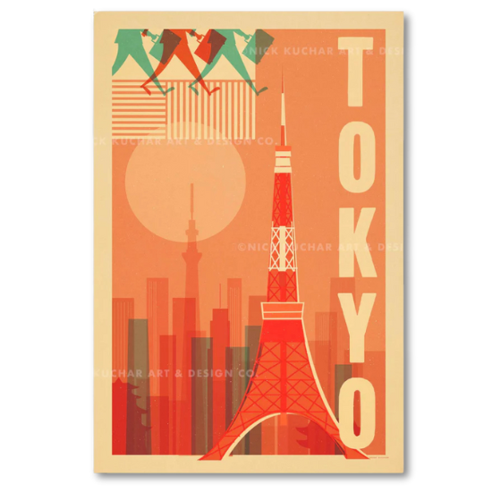 たくさんの人からリクエストがあったので、デザインしたプリント。東京は文化、ビジネス、歴史、コミュニティの素晴らしい街です。このプリントには、渋谷交差点、東京タワー、街並みを描きました。日本の皆様、アリガトウゴザイマス!