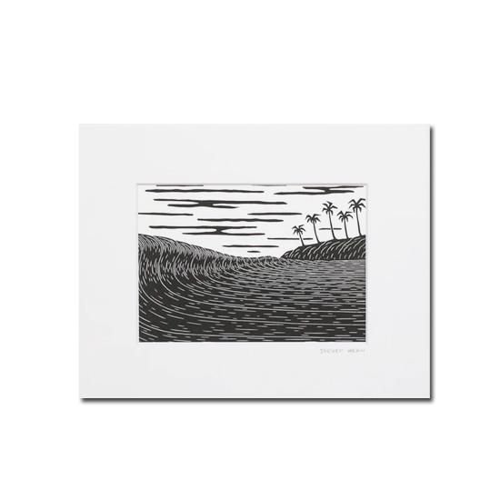 現代サーフアートの中でも珍しい木版画で海や波を表現しています。