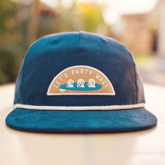 ハワイ各地の美しい風景をレトロなタッチで描く、サーフアーティスト、Nick Kucharのスナップバックキャップ "Let’s Party Wave"