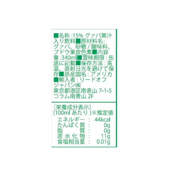 15%グァバ果汁入り飲料