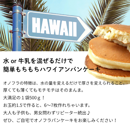 ONOHULAパンケーキミックスは、ふんわり、もっちりした生地が魅力。