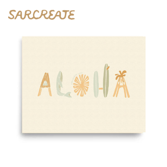 名前は "Sarah" と "create" を組み合わせたもので、マウイ島ノースショアの小さなスタジオや旅先から、成長中の企業やブランドのためにカスタムデザインを制作しています。