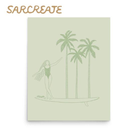 名前は "Sarah" と "create" を組み合わせたもので、マウイ島ノースショアの小さなスタジオや旅先から、成長中の企業やブランドのためにカスタムデザインを制作しています。
