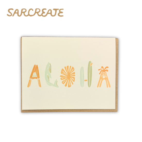 名前は "Sarah" と "create" を組み合わせたもので、マウイ島ノースショアの小さなスタジオや旅先から、成長中の企業やブランドのためにカスタムデザインを制作しています。